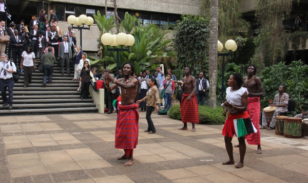 Avajaisseremonioissa paikallinen tanssi- ja rumpuyhtye viritti konferenssivieraat afrikkalaisiin rytmeihin.
