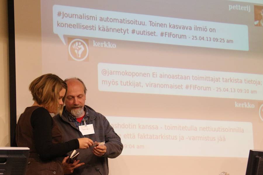 Videokuvaaja tallensi puheita ja yleisö kommentoi keskustelua mm. twiittaamalla.