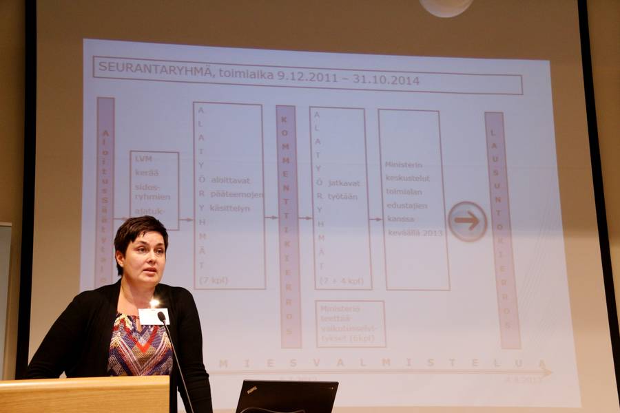 Viestintäneuvos Sanna Helopuro liikenne- ja viestintäministeriöstä kertoi tietoyhteiskuntakaaren taustasta, valmistelusta ja sisällöstä. Effiltäkin on pyydetty lakiluonnoksesta lausunto.