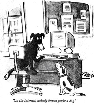 Kuva: Peter Steiner. Julkaistu 6.7.1993 The New Yorkerissa sivulla 61.